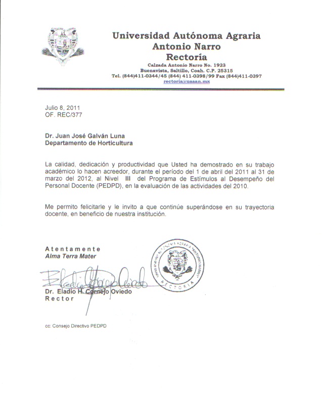 Index of /CALIDAD/HORTICULTURA SEDE/CUARTO-INFORME-ACREDITACION/1. PERSONAL ACADÉMICO/CURRICULUM-PROFESORES-DE-HORTICULTURA/Dr. Galván/C.V. y Docs comprob Galván 2011/Reconocimientos 2011